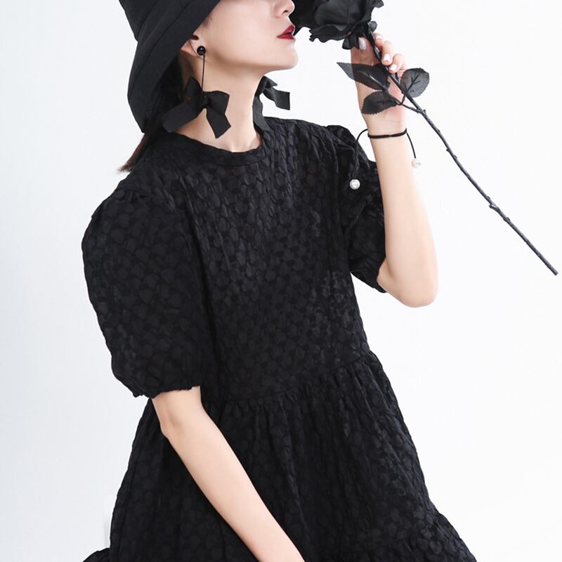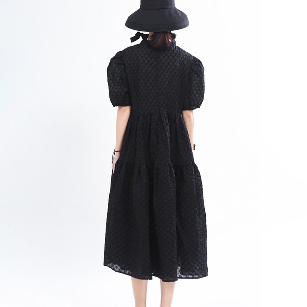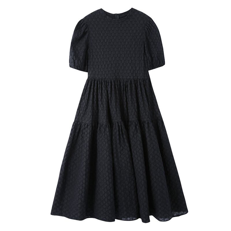 パフスリーブ ボンディング ドットワンピース【black(黒)】
