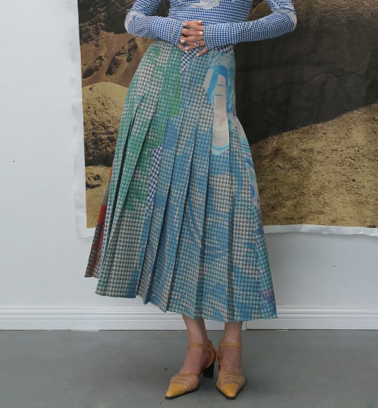 チェック文学プリント プリーツスカート