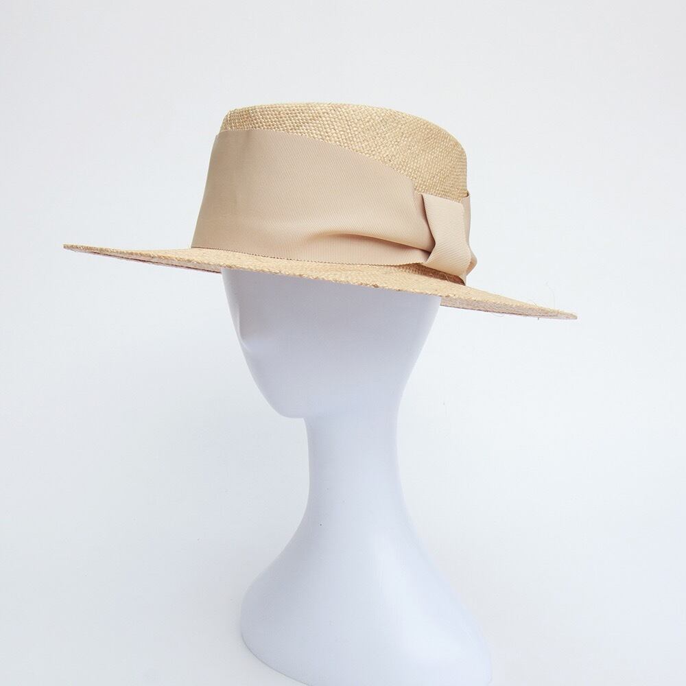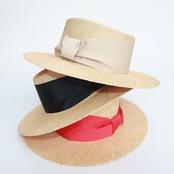 大人麦わら帽子 カンカン帽【ベージュ/ブラック(黒)】
