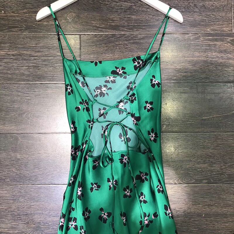 光沢のある生地が美しく、綺麗なグリーンが映えるワンピースです。