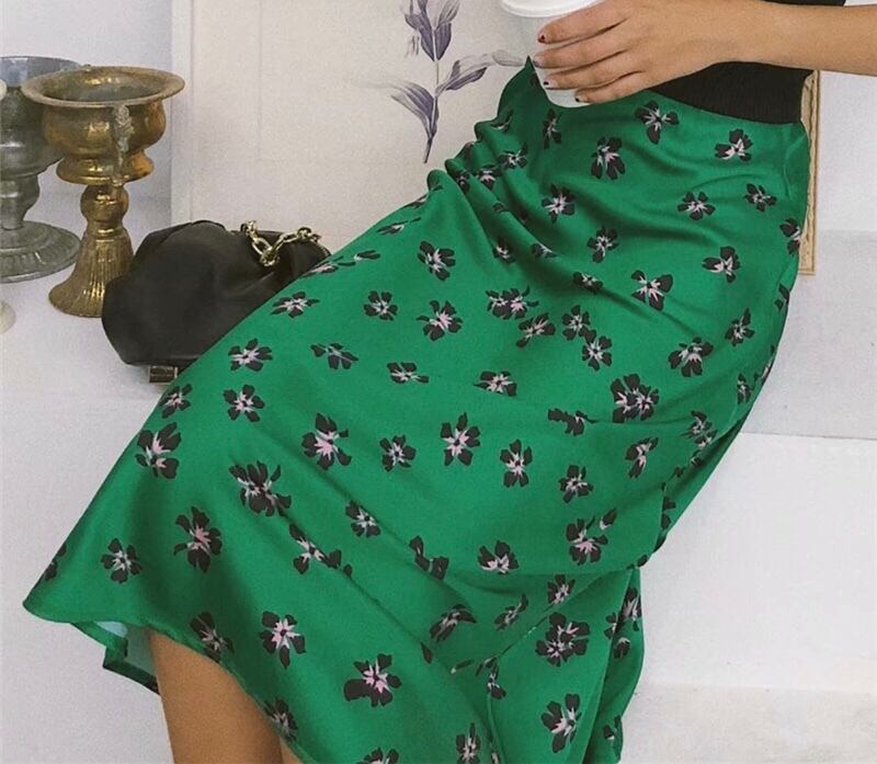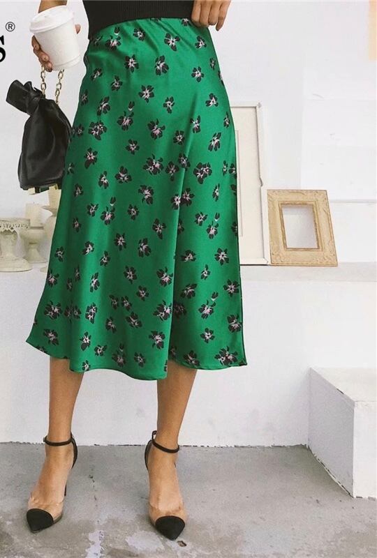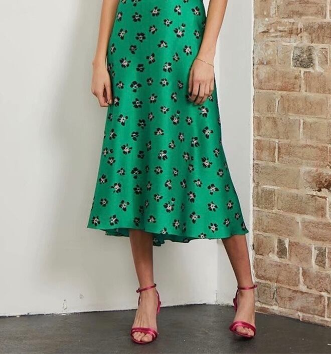 光沢フラワーキャミソールワンピースのスカートタイプ。
