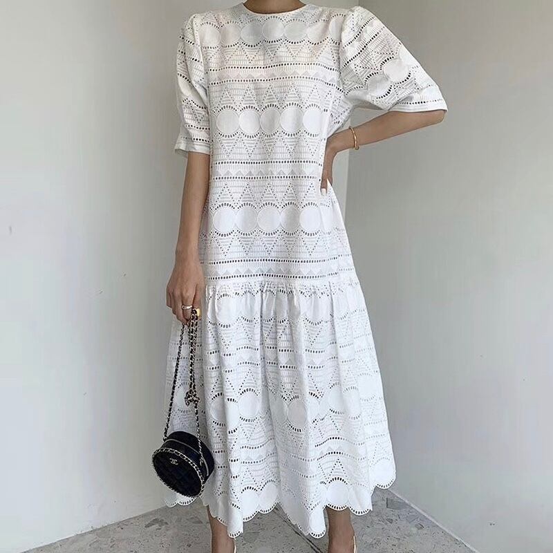 2色展開 サークルレース ミディワンピース【ホワイト(白)/ブラック(黒)】