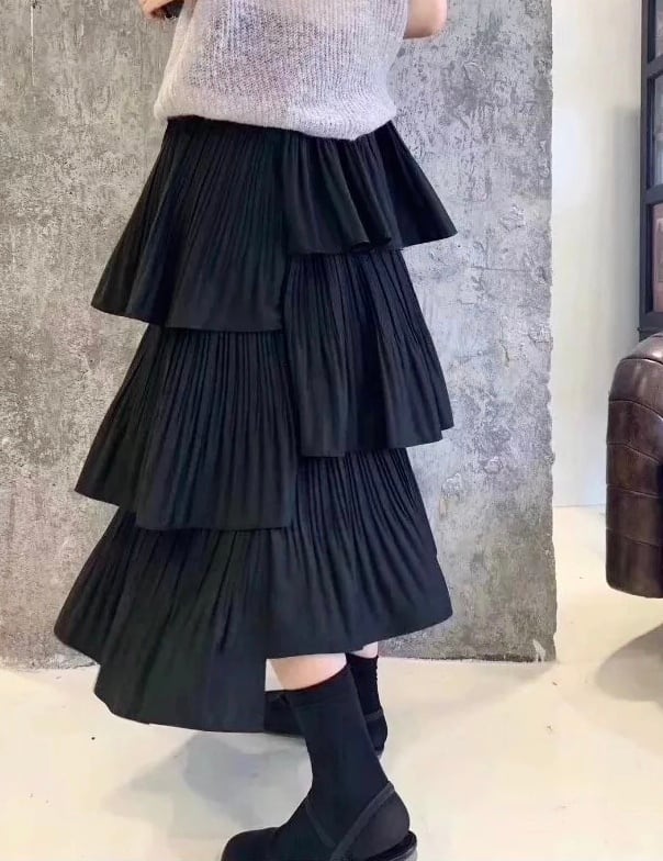 3色展開 アンバランス フリルプリーツスカート【グレー/ブラック(黒)/ベージュ】