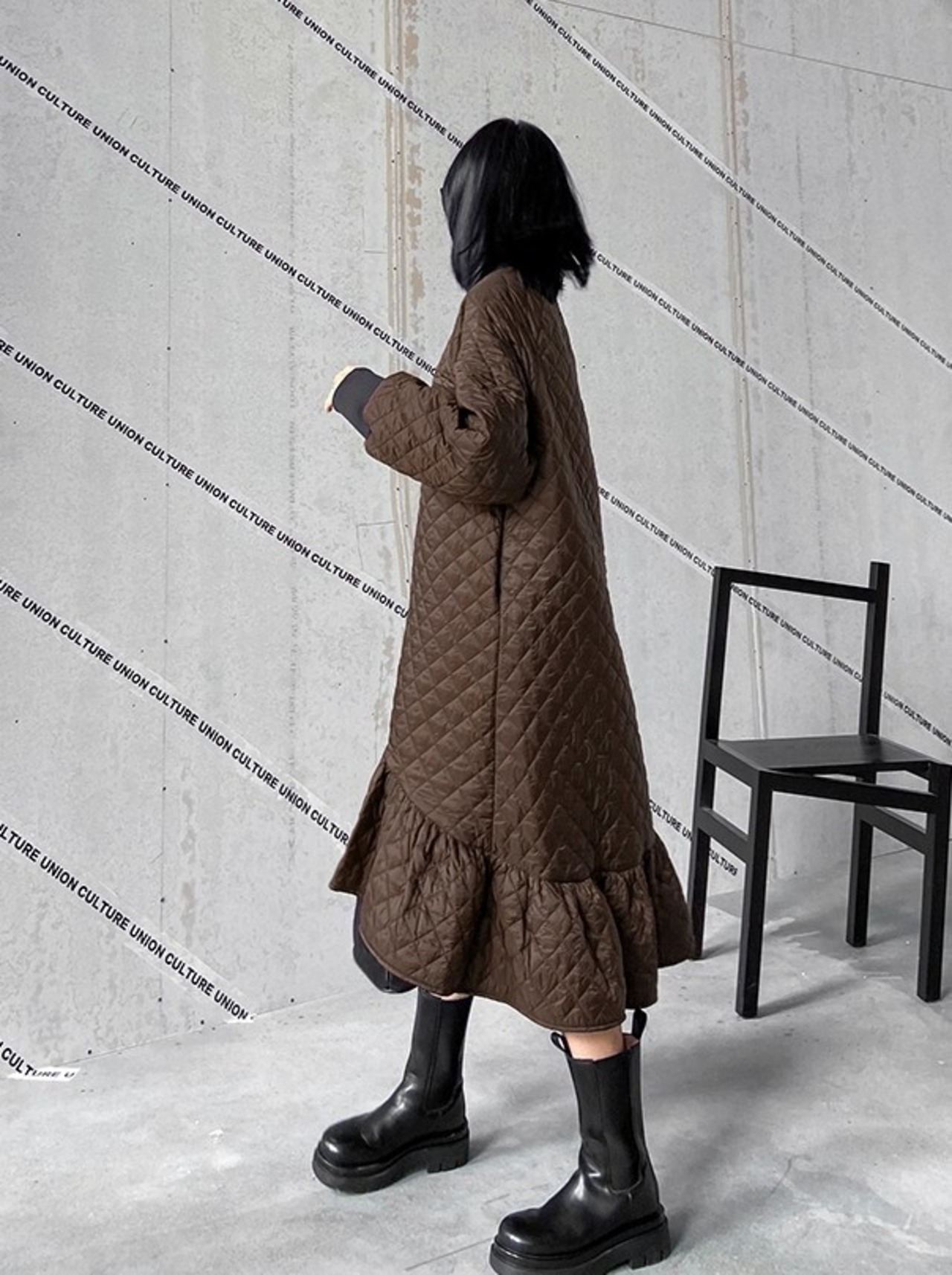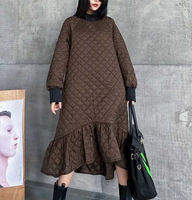 2色展開 ダウン地Aライン ラグラン袖ワンピース【ブラック(黒)/ブラウン(茶)】