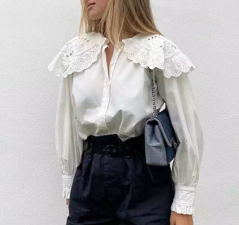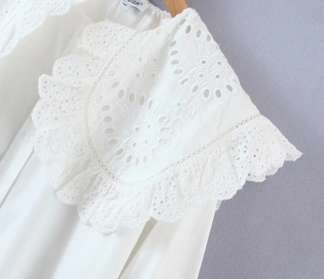 コットンレースの大きな襟デザインで少しレトロでナチュラルな雰囲気に。