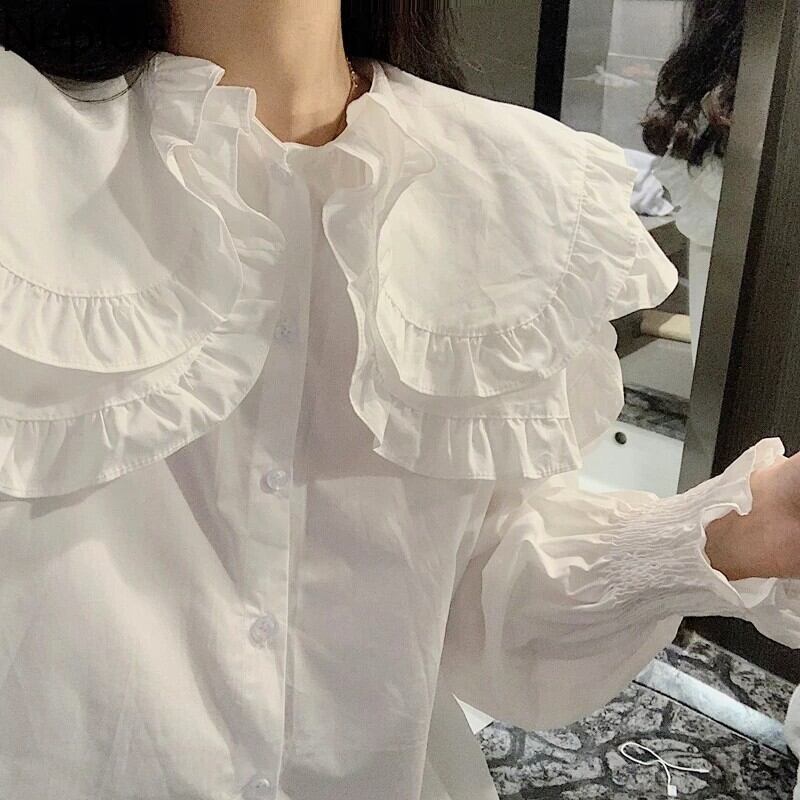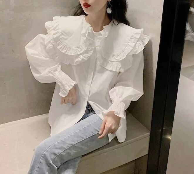 ニットやカーディガンから覗かせるのが可愛く、袖もシャーリングフリル付き覗かせるとさらにキュート。