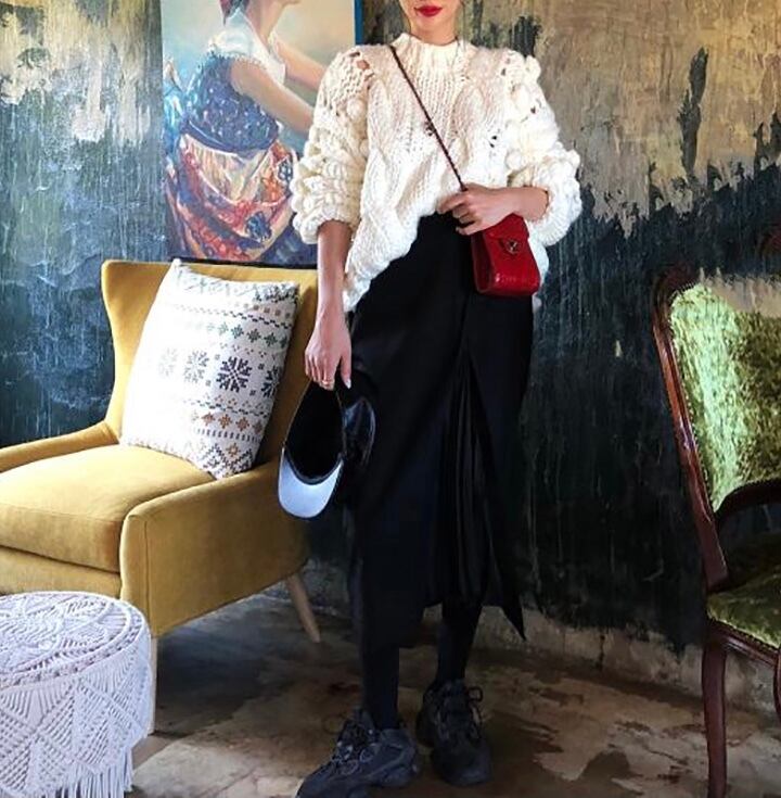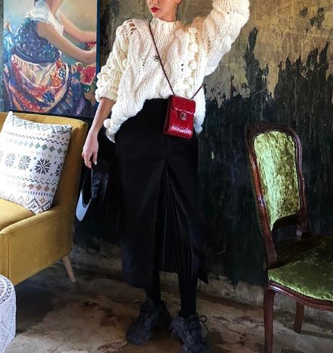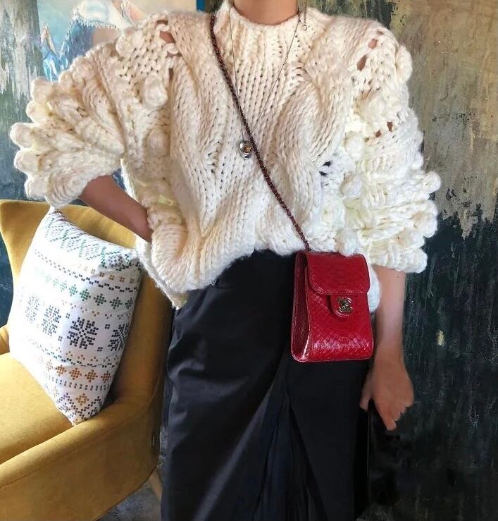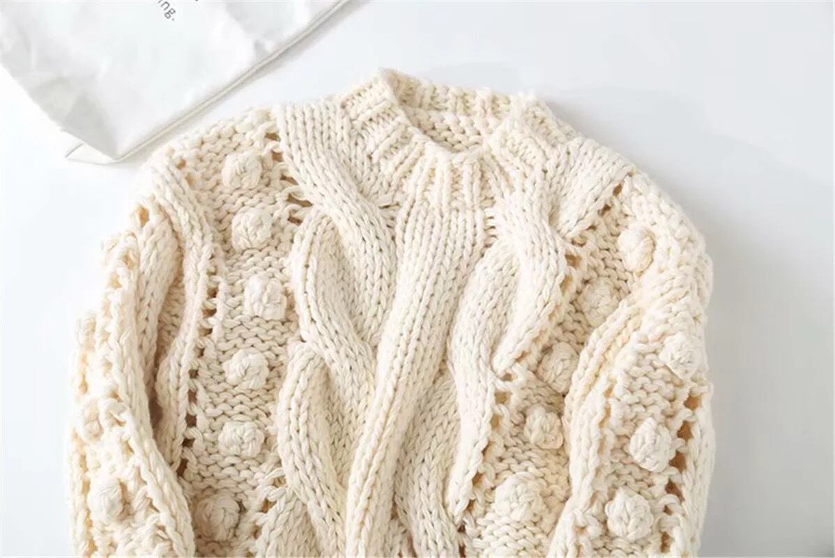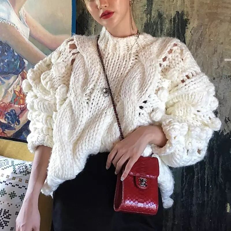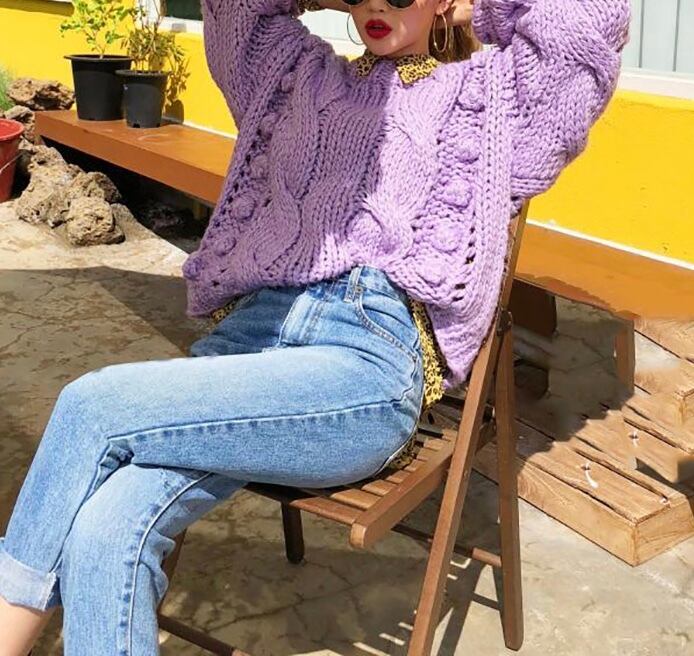 3色展開 ポンポン付きボリュームニット【ホワイト(白)/パープル(紫)/グリーン(緑)】