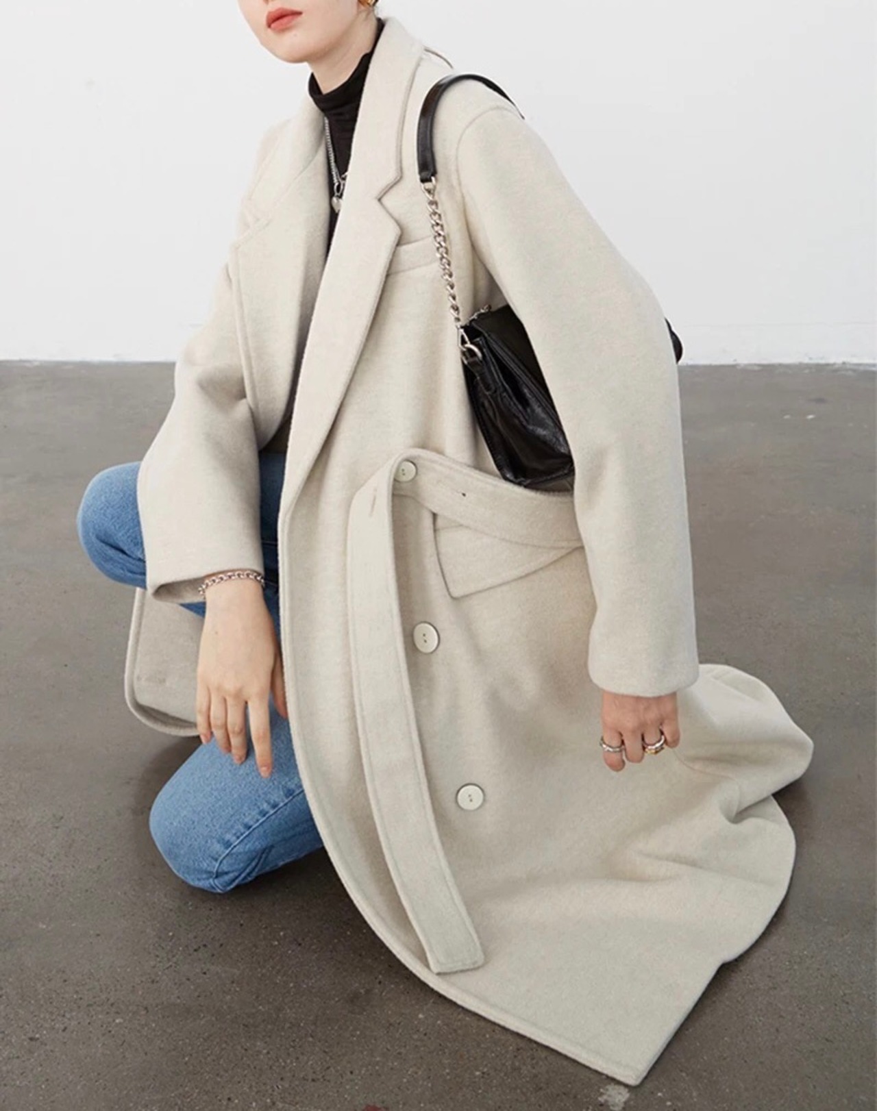 ダブルボタン オフホワイトウールコート