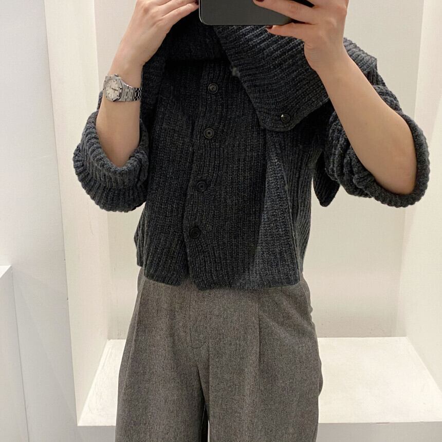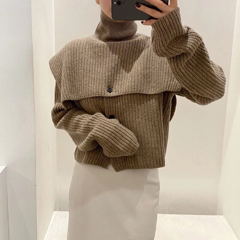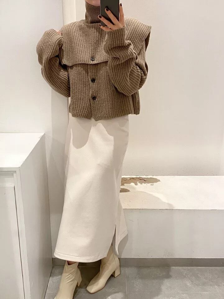 ニットカーディガンとハイネックニットがセットになったアイテム。