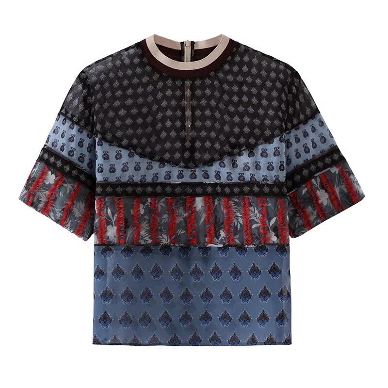 4種類の生地の切り替えが素敵なシースルーブラウス。