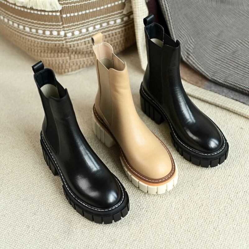 2色展開 丸ヘッド サイドゴアショートブーツ【ベージュ/ブラック】商品CD:7034