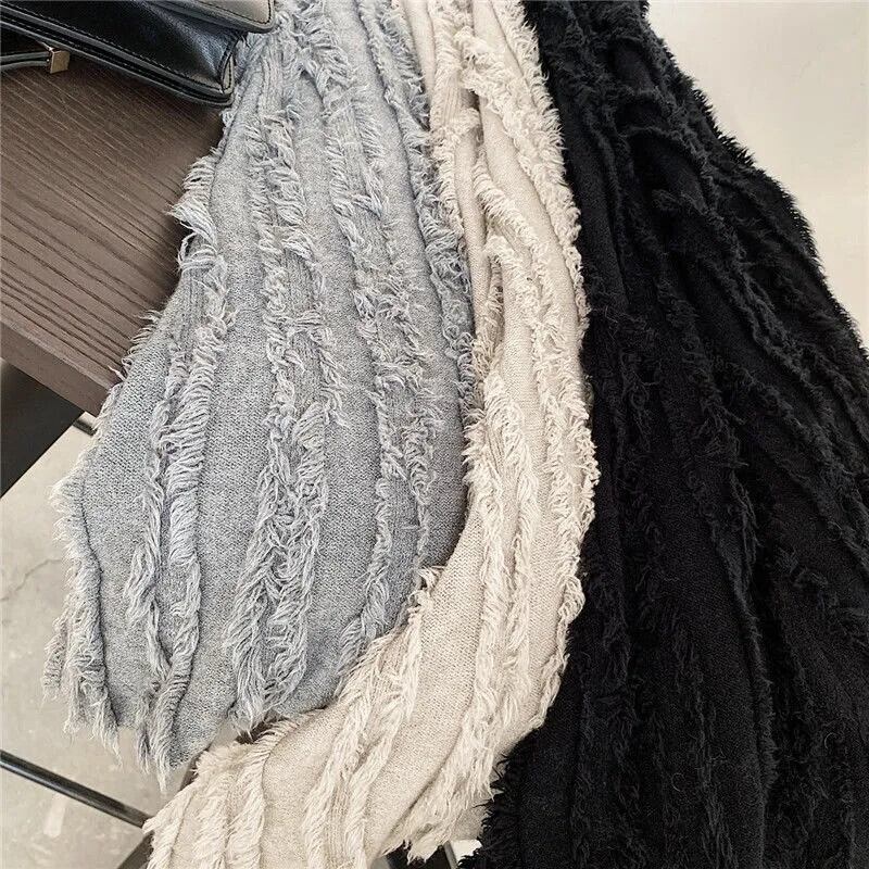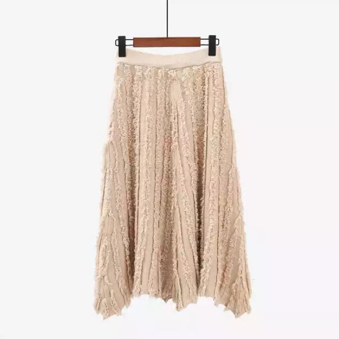 アンバランスな裾デザインが可愛いタッセルニットスカート。