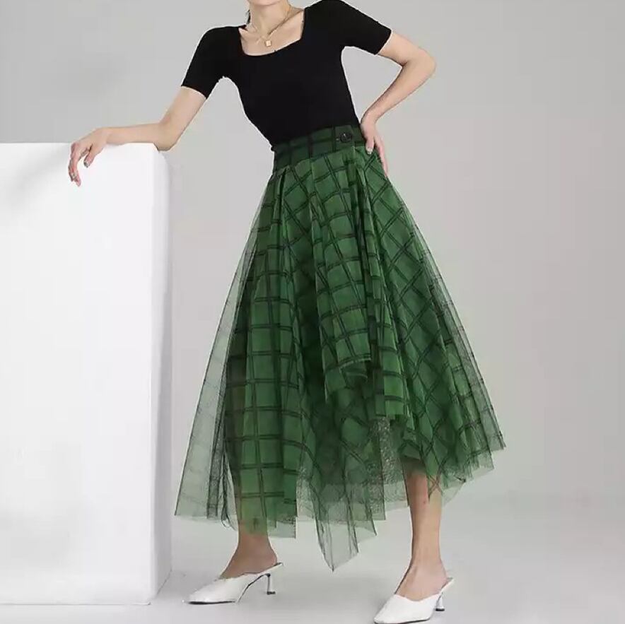 グリーンチェック アンバランスチュールスカート 商品CD:7040