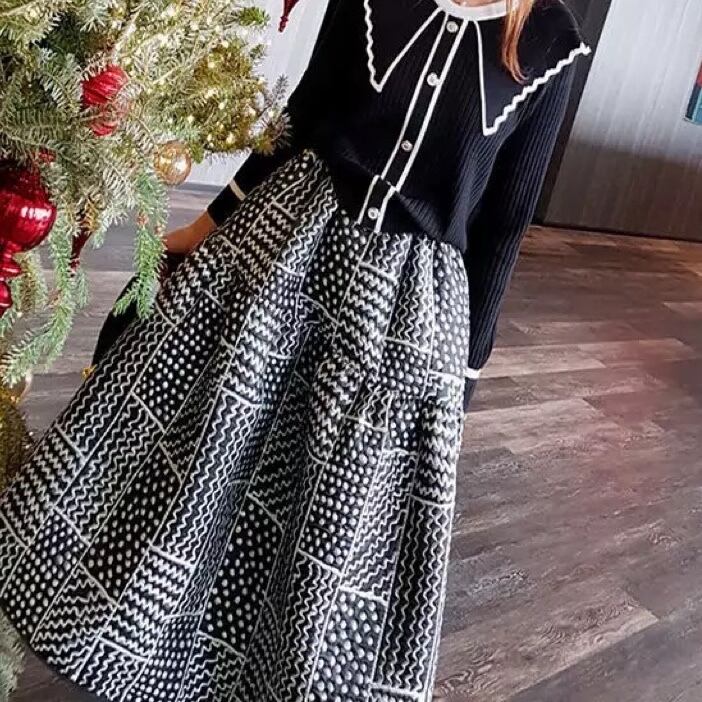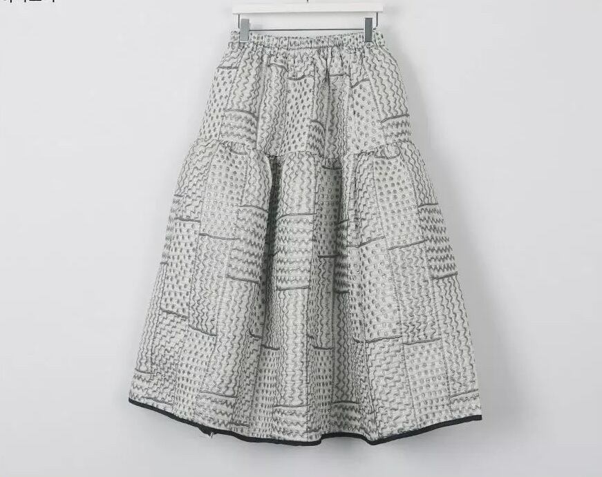 2色展開 ジャガードボンディング切り替えしスカート【ブラック(黒)/ホワイト(白)】商品CD:7085