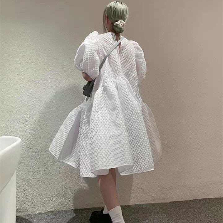 セシリーバンセン風のボリューミーなボンディングワンピース。